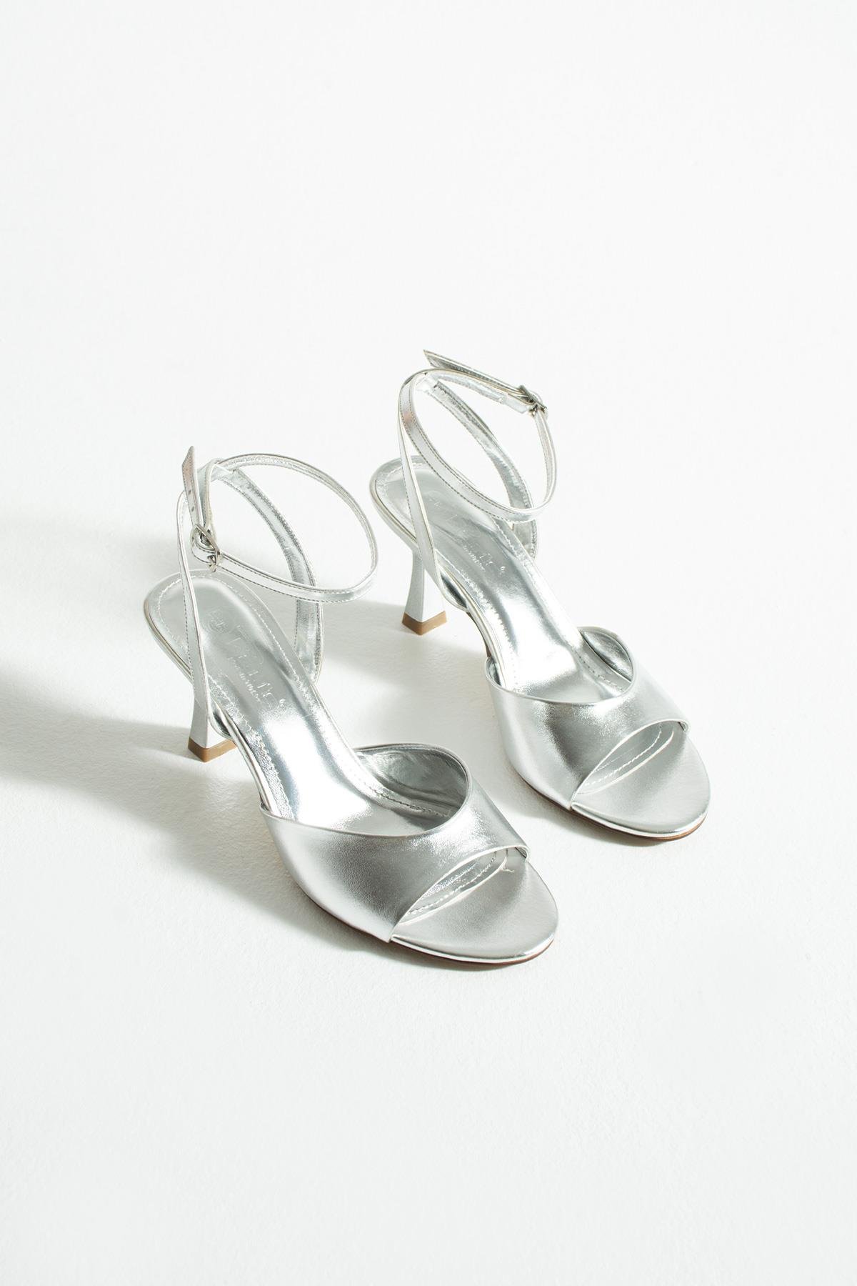 Kadın Metalik Topuklu Sandalet Valen - Gümüş