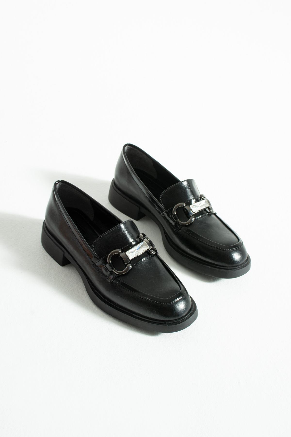 Kadın Taşlı Günlük Loafer Avena - Siyah